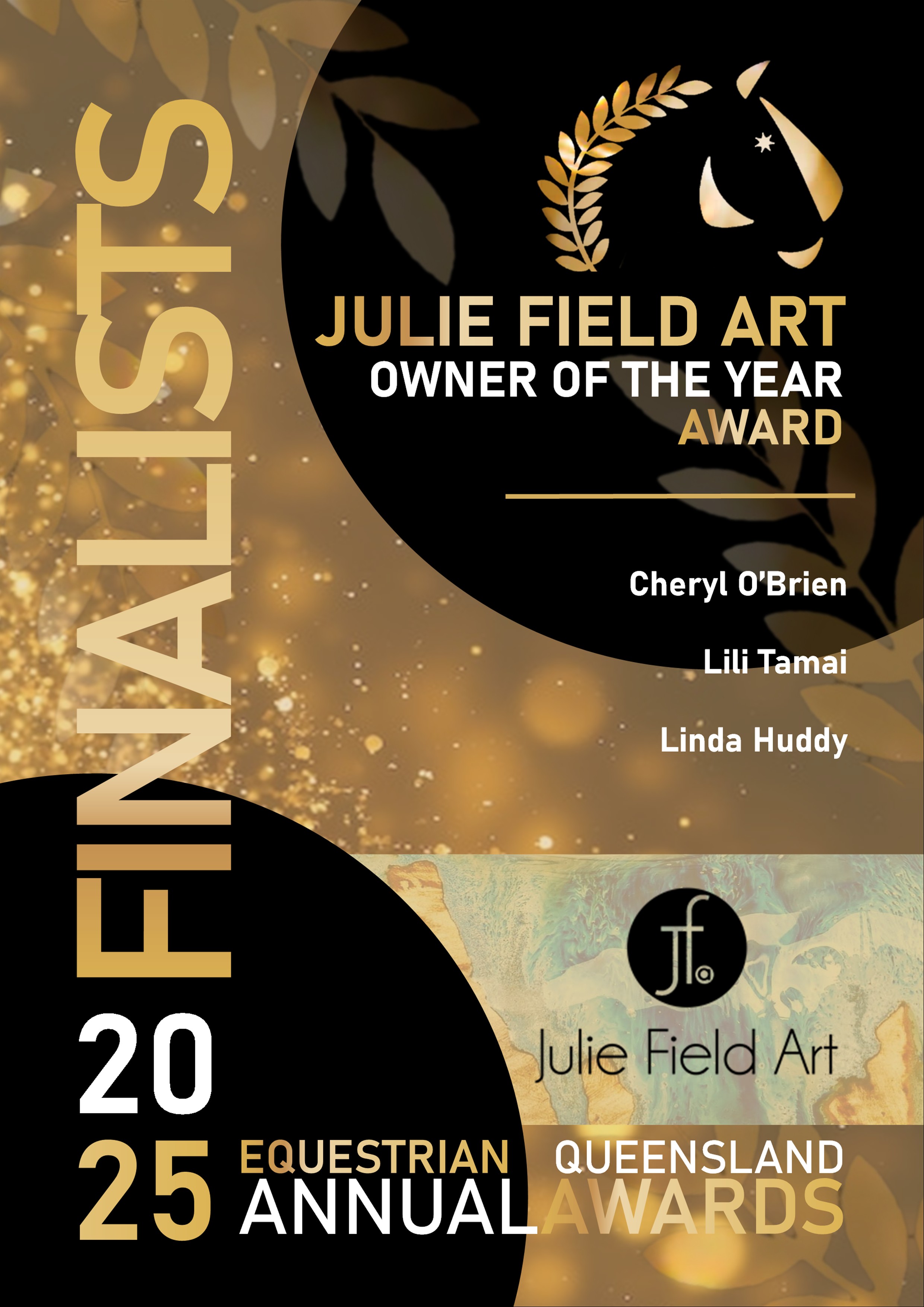 OWNER OF THE YEAR Proudly Sponsored by Julie Field Art. Award Criteria Period: November 2024 – October 2025 This award recognises a Queensland owner/s (must be an EQ member) that has contributed to the success of equestrian sport by providing horses of the highest quality to riders within the various equestrian disciplines. These horse/s have competed to an exceptional level during the year either on the State, National, or International stage. The following criteria will be considered judging: