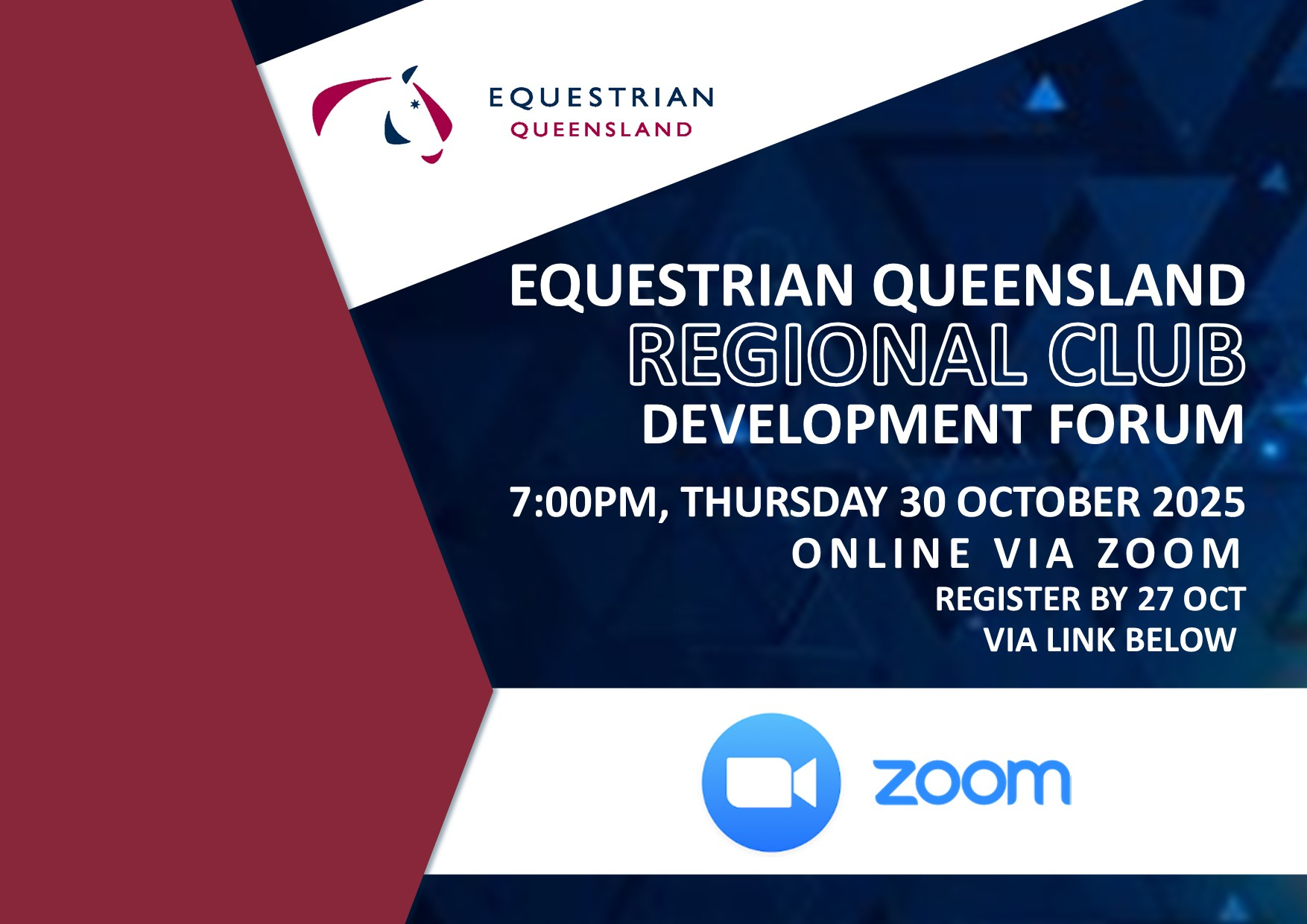 Equestrian Queensland will be conducting an online club forum for regional affiliated clubs and event organisers on Thursday 30th October from 7pm.