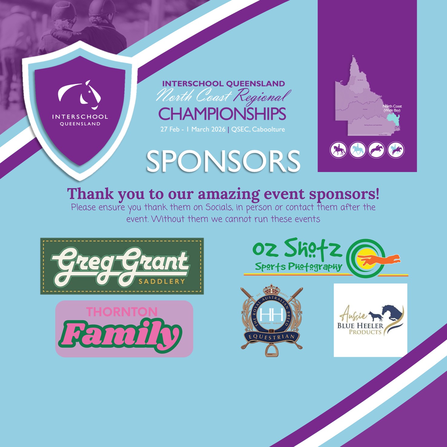 A sincere thank you to the Interschool Queensland North Coast Sub-Committee for their commitment and organisation, along with our valued sponsors, dedicated volunteers, supportive families and the many individuals working behind the scenes. Events of this scale are only possible through the collective efforts of our incredible equestrian community.