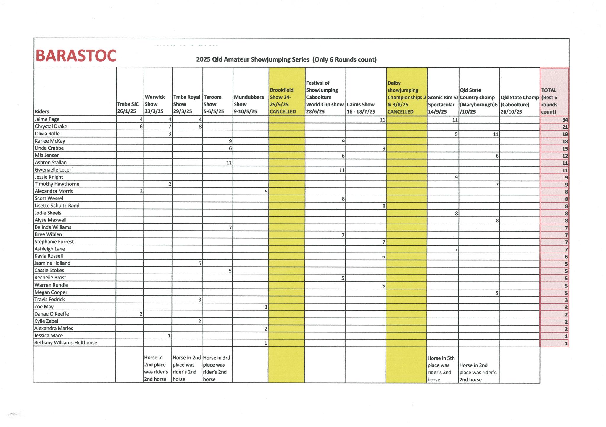 | 11 | 6 October 2025 | QLD State Showjumping Championships - Maryborough |