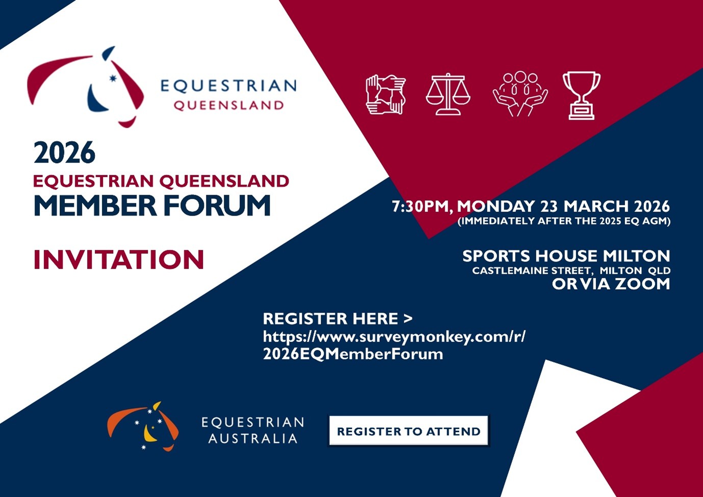 Equestrian Queensland members are invited to attend a Members Forum immediately following the EQ Annual General Meeting on Monday 23 March 2026.