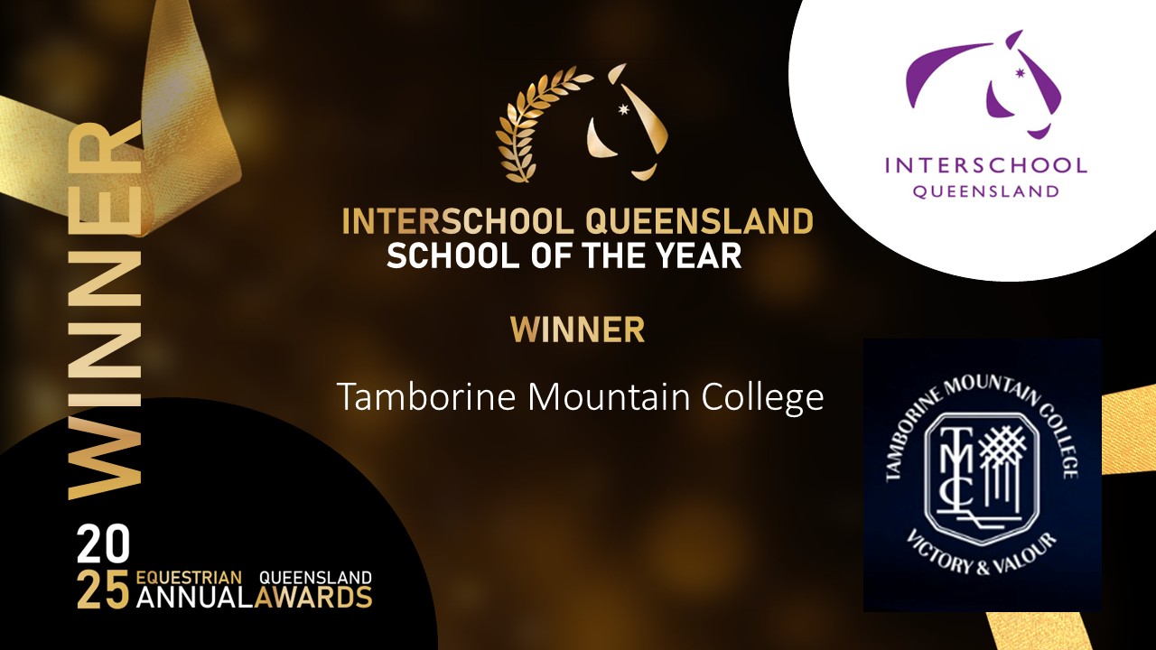 SCHOOL OF THE YEAR Proudly sponsored by Interschool Queensland. Award Criteria Period: November 2024 – October 2025 This award recognises an EQ affiliated school that has set itself apart from other schools through its high standard of organisation, governance, community engagement, and competition successes. This school havs provided opportunities for riders, volunteers, administrators, and officials to develop within and outside the school environment. The following criteria will consdiered for judging: