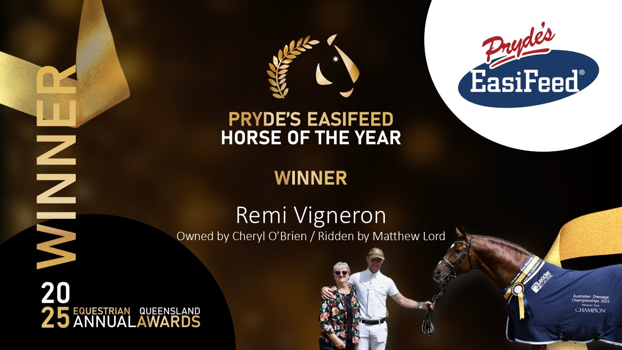HORSE OF THE YEAR Award Criteria Period: November 2024 – October 2025 This award recognises a horse owned by an Equestrian Queensland member, who in the past twelve months, has had exceptional performances either on the State, National, or International stage and gains recognition for the sport. The following criteria will be considered for judging: