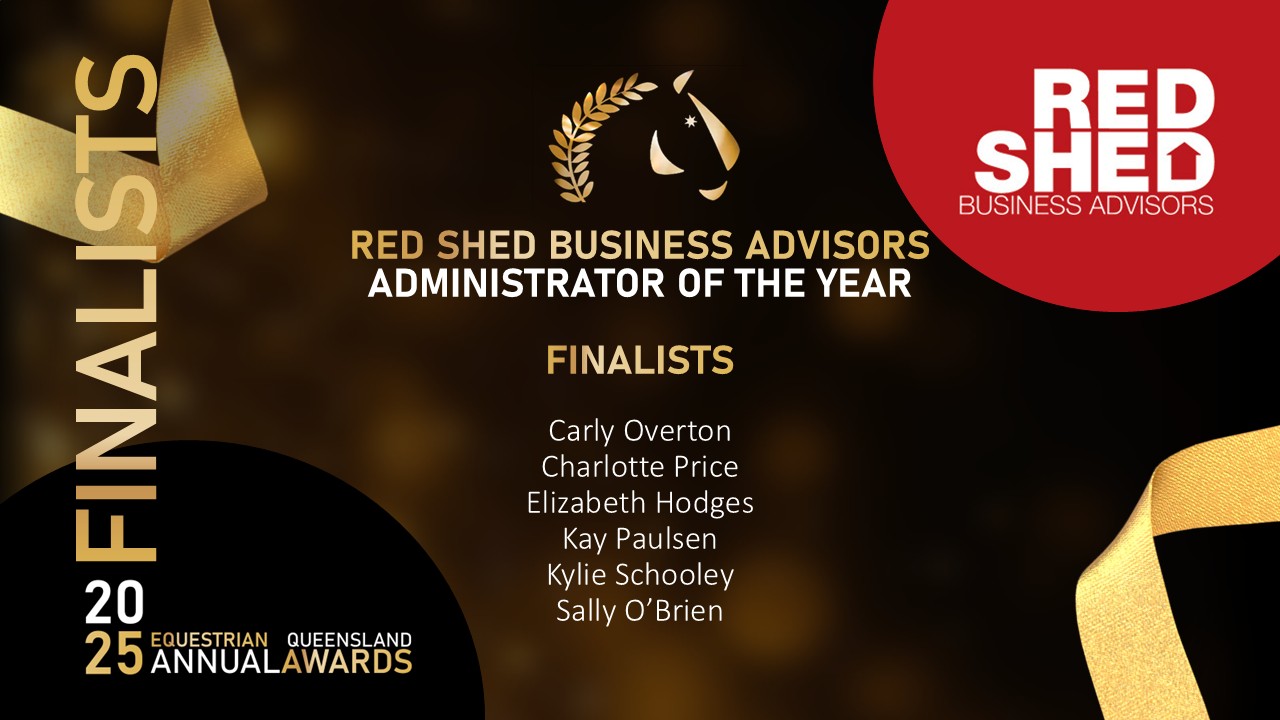 ADMINISTRATOR OF THE YEAR Proudly sponsored by Redshed Business Advisors. Award Criteria Period: November 2024 – October 2025 This award recognises a Queensland member who has made a significant contribution during the award criteria period to the administration of their equestrian sport or club. The following criteria will be considered for judging: